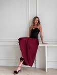 Він ніжно та впевнено обіймає, одночасно підкреслюючи природні вигини за рахунок утяжки талії до 6–8 см — перетворюючи твій силует на справжній витвір мистецтва.